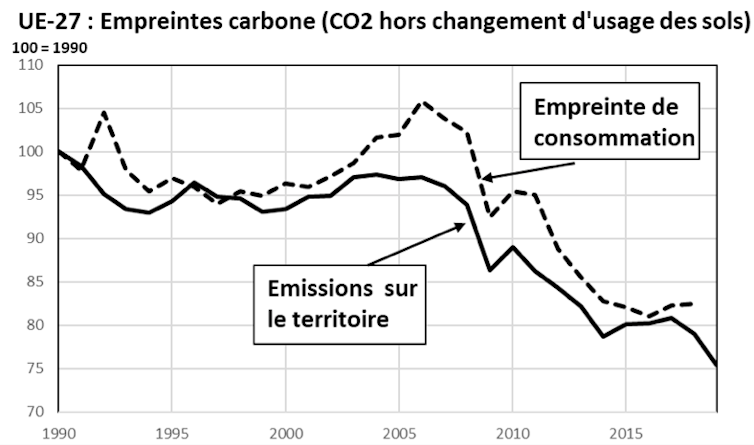 Symétriquement, l’Union européenne est le premier importateur net d’émissions de CO2, avec une empreinte de consommation qui dépasse de 23 % les émissions de son territoire (20 % au Japon et 5 % aux États-Unis). À l’intérieur de l’Europe, les situations restent très hétérogènes, entre le Royaume-Uni et la France, où la désindustrialisation a creusé l’écart entre l’empreinte de consommation et les émissions territoriales, et l’Allemagne et la Pologne où l’industrie a bien mieux résisté à la mondialisation.